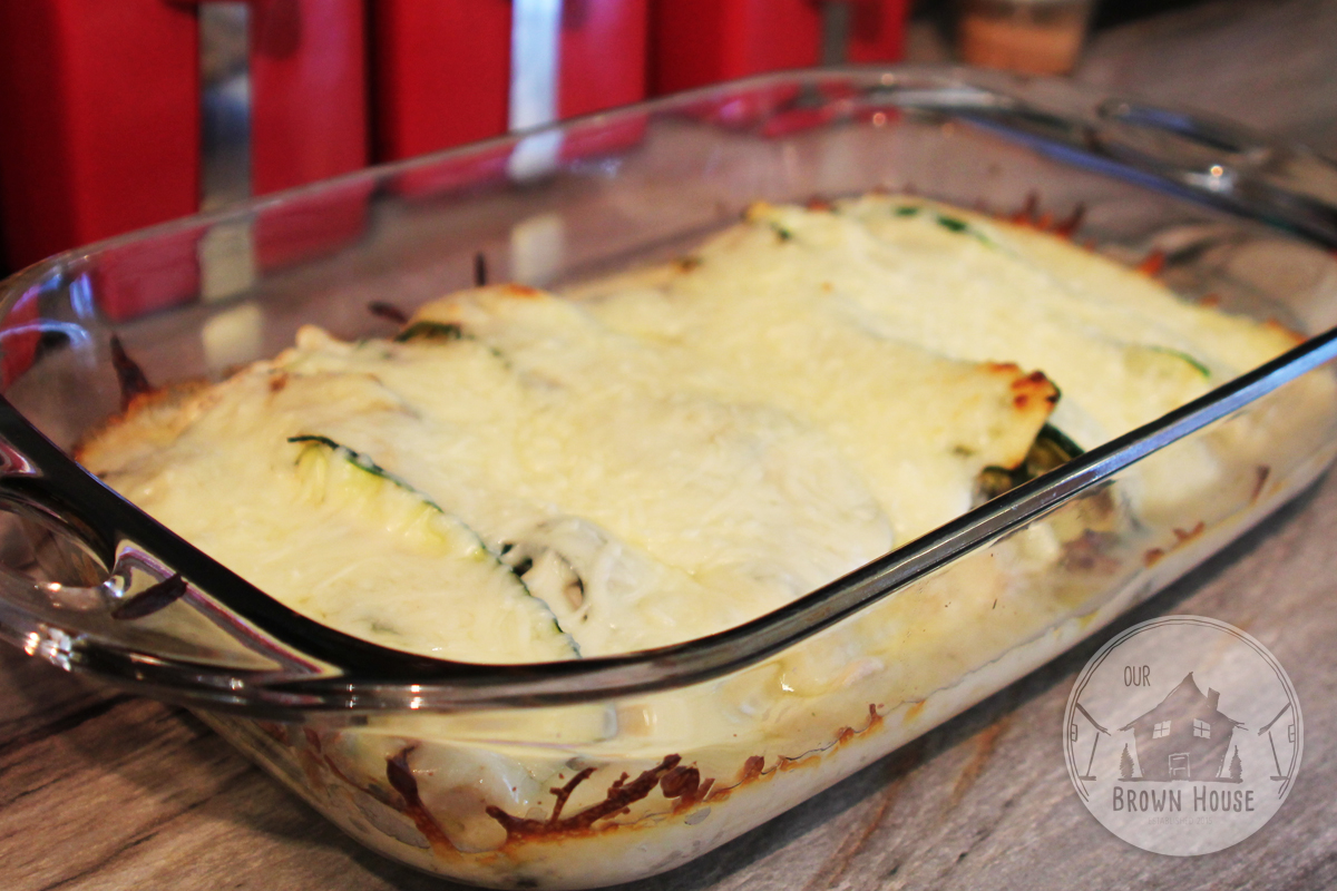 - Stir in the roasted broccoli and cooked chicken and season with a little more salt and pepper, to taste. Serve over spaghetti squash or zoodles, or bake into a lasagna with zucchini lasagna noodles.